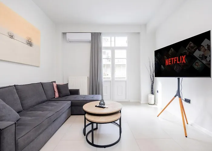 Denne ferielejlighed ligger 11 minutters gang til OTE-tårnet, tæt på Galerius-buen. Aristotelous-pladsen kan man nå inden for 1 km. Dessert restaurant Trigona Elenidi kan man nå på 5 minutters gåtur. Du kan komme til Trigonion Tower om et par minutter i bil.
